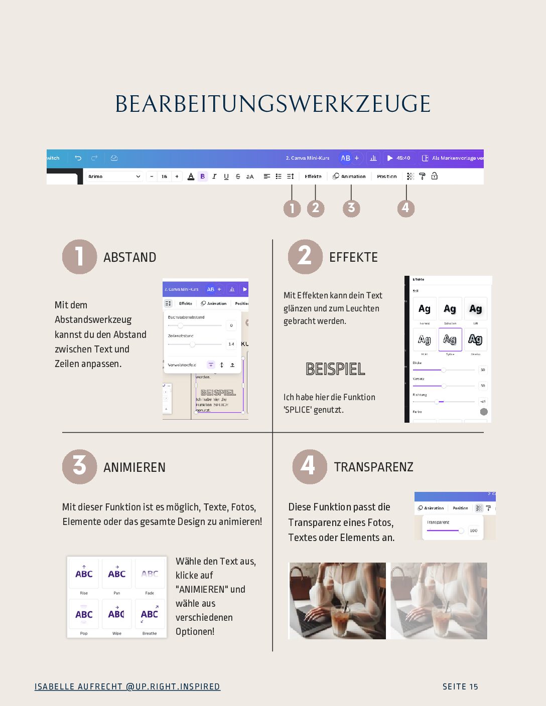 Der Kurs führt dich übersichtlich durch die wichtigsten Funktionen von Canva, zum Beispiel: